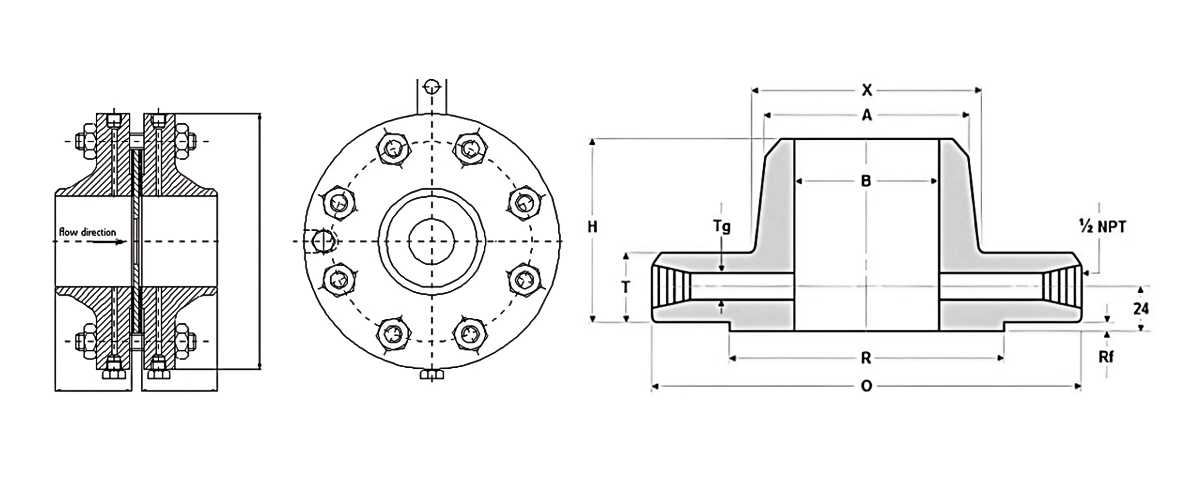 Orifice flanges are one of the economical means of measuring flow. They are crucial elements in piping systems, positioned between pipe sections. The orifice flange contains an orifice plate made of 316 stainless steel between the tailpiece and thread piece of the union.