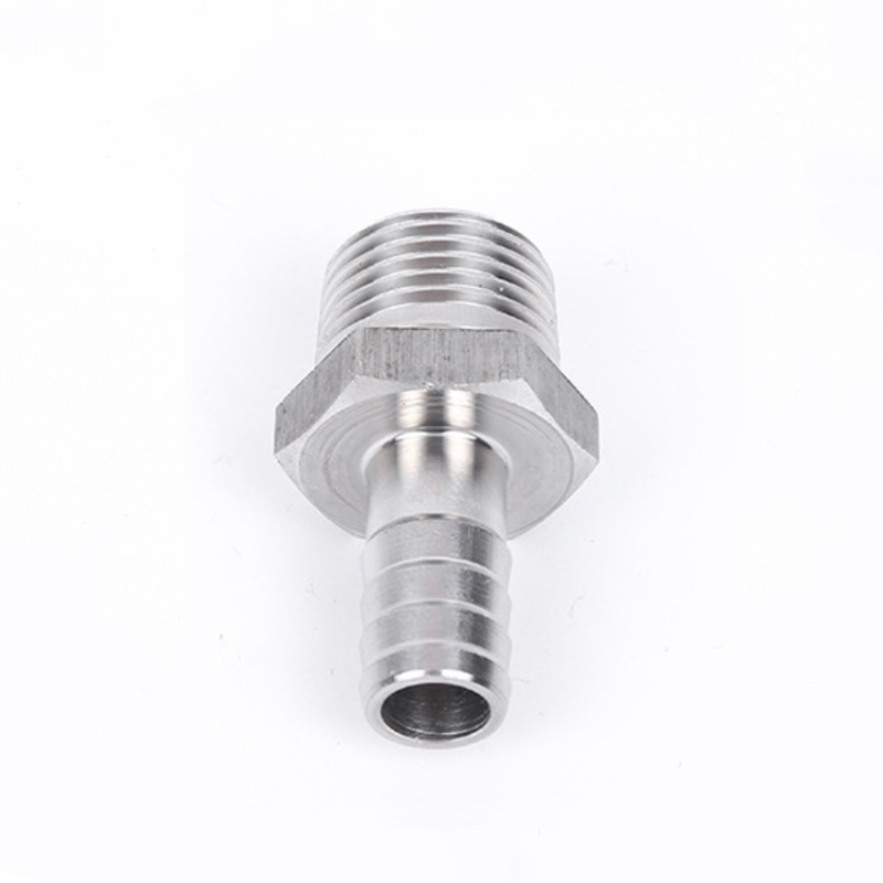 Stainless steel barb nipple consist of a cylindrical body with a sting or raised surface on one end. Stingers are small raised flutes or raised ridges that provide a secure grip when inserted into flexible pipes or hoses. The other end is threaded to connect to other threaded accessories or components.